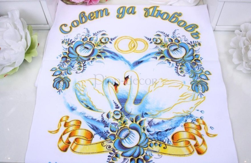 Голубой рушник для каравая Лебеди В избранное Тип аксессуаров для Традиций и Конкурсов Аксессуары для каравая