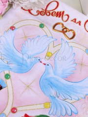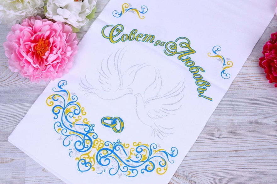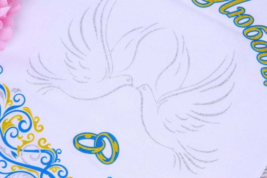 Рушник Голуби В избранное Свадебный рушник для каравая. Ширина 35 см. Длина 150 см. Тип аксессуаров для Традиций и Конкурсов Аксессуары для каравая Показать полностью